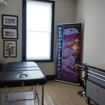 Cleanliness is of the utmost importance, where Sacred Ink Collective maintains a flawless studio space and takes every necessary precaution when tattooing. The quirky decor really elevates the studio to a place of whimsy, creativity and magic. Funny references to tattoo addictions sit alongside beautiful crystals and all sorts of knick knacks.